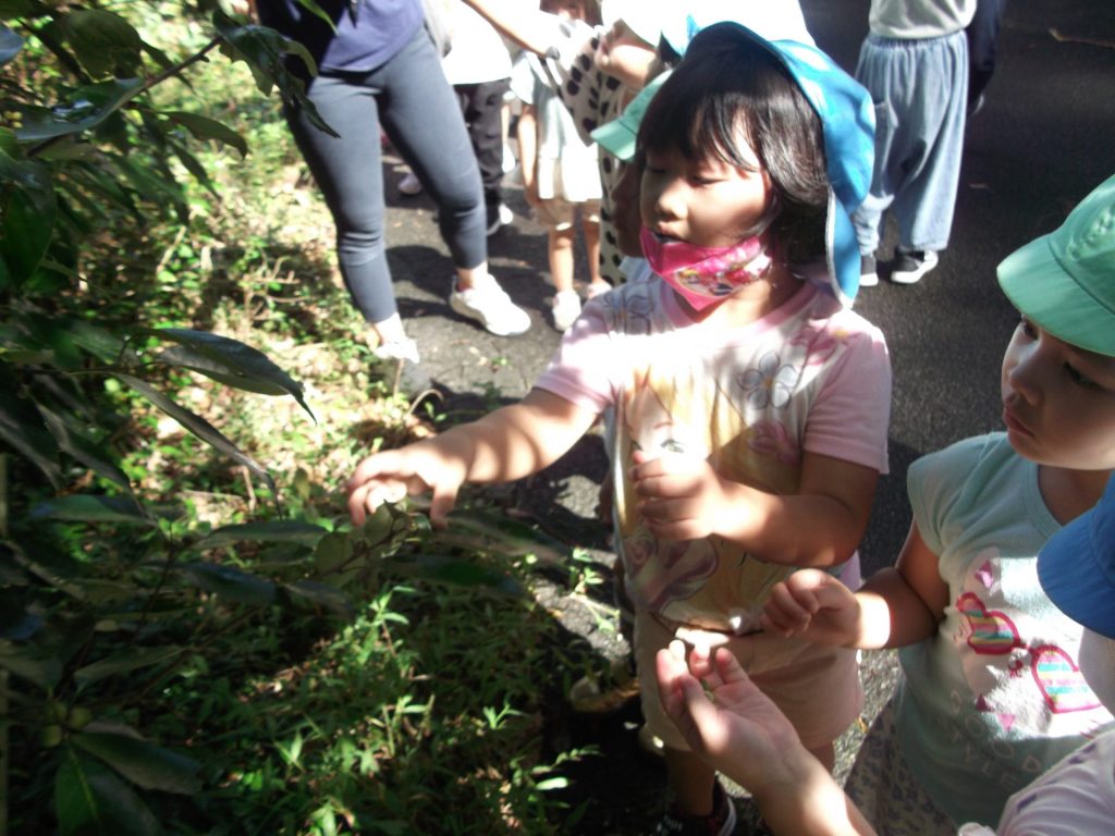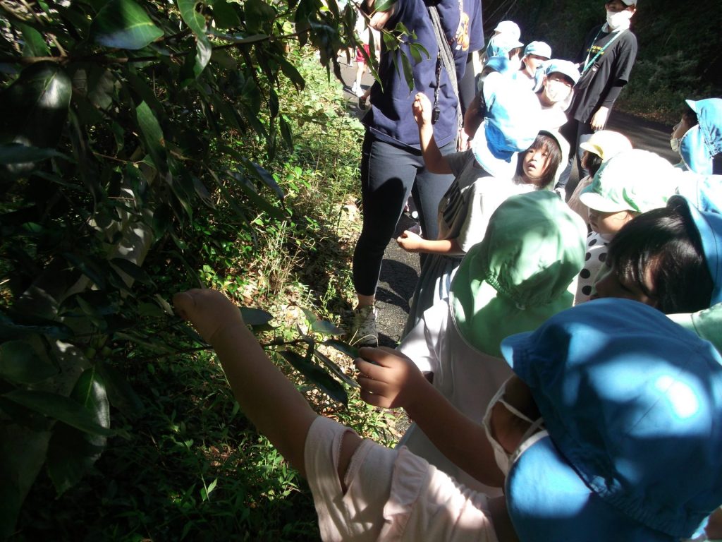 「葉っぱの色が変わっとる」小さな発見もみんなで共有。気づくのは大事。