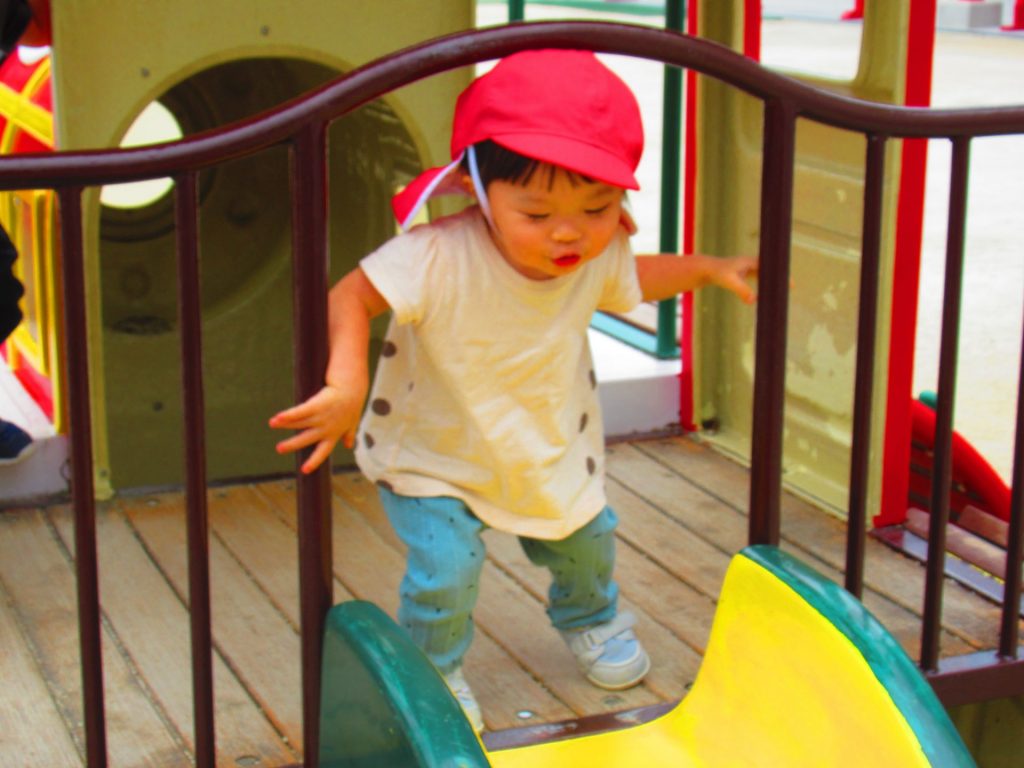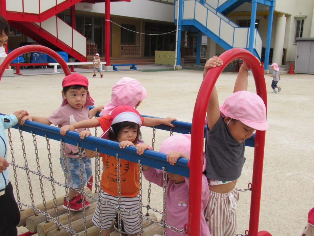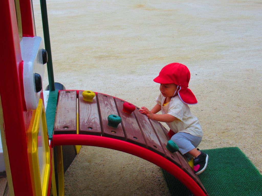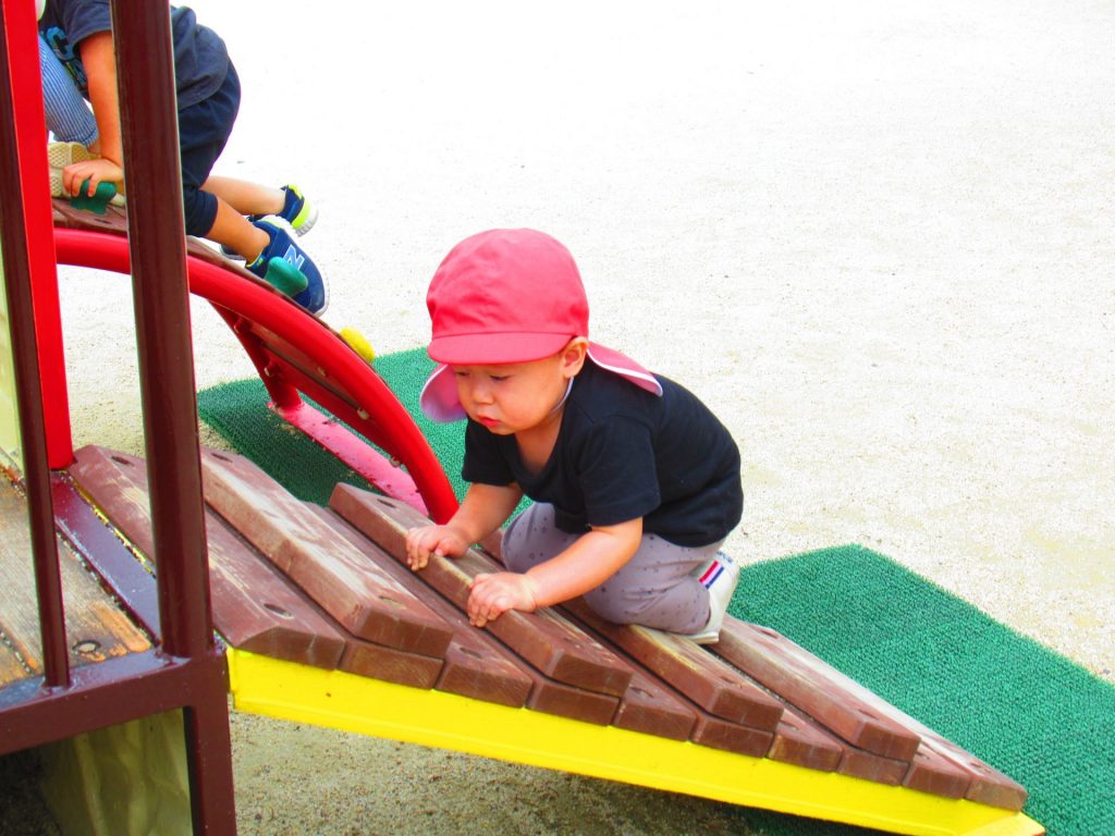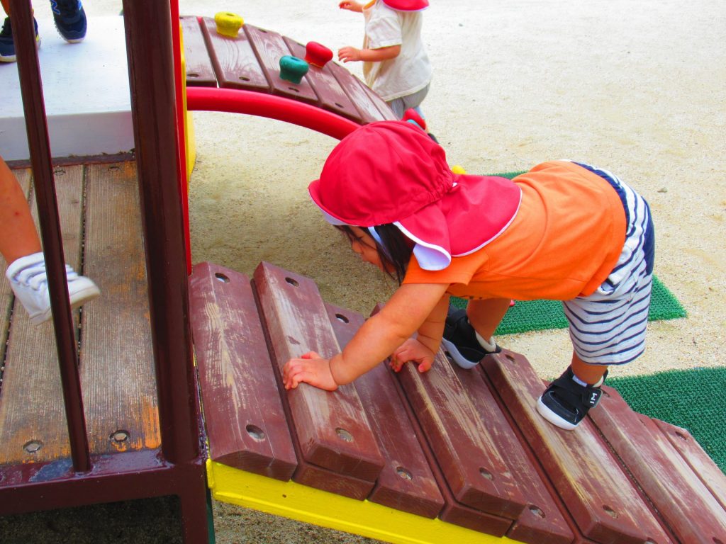 お尻高々して、一生懸命登っています。上手に登れるようになりましたね。