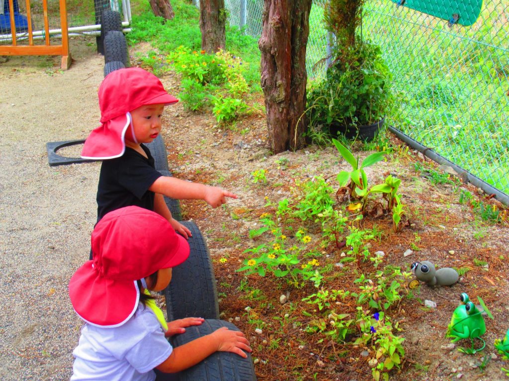 「アリさんとカエルさんがおったよ!」「先生、カエル取って!」