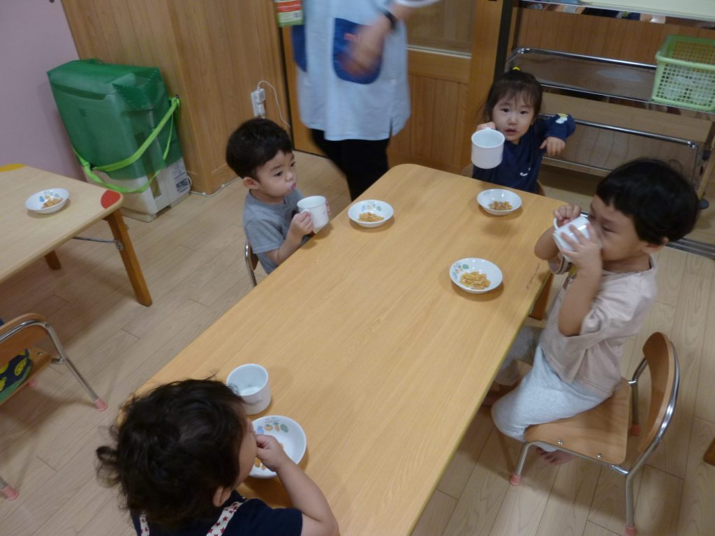 おやつから給食までの様子を時間をおって、お届けしたいと思います。子どもたちの様子は、どうでしょうか。