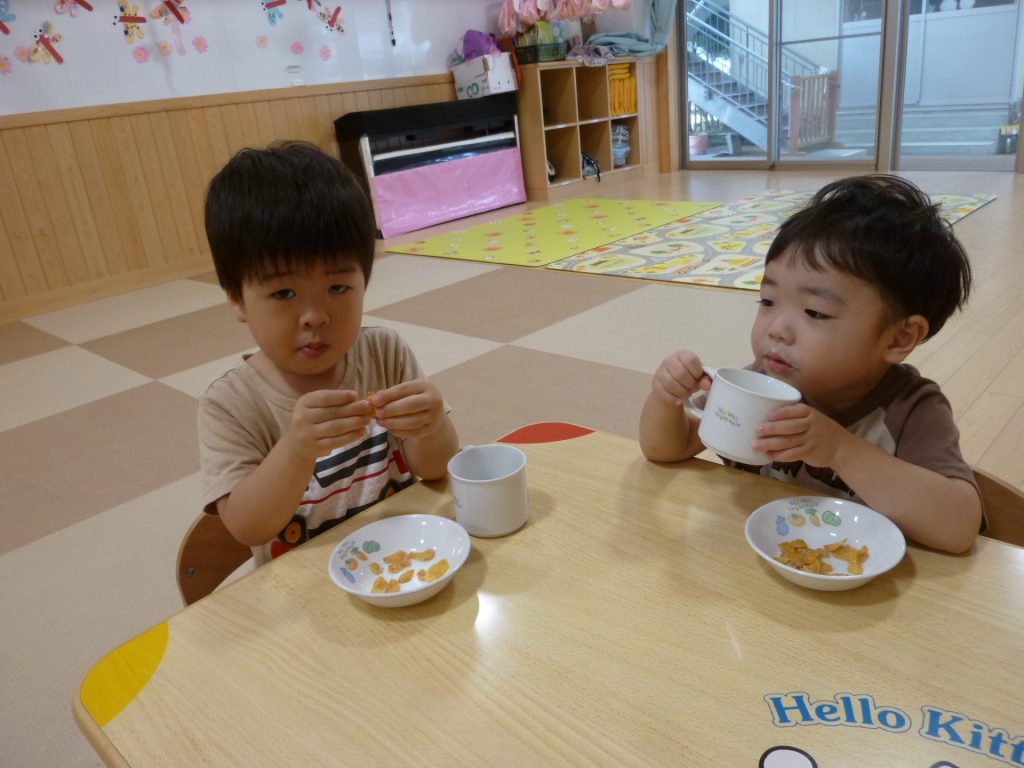 おやつをいただいています。 今日のおやつは「フレーク」です。