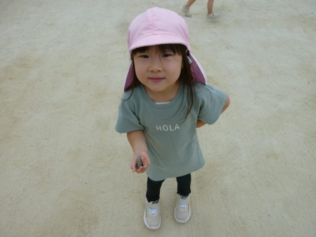 砂をつまんでは入れるのが楽しいよう。