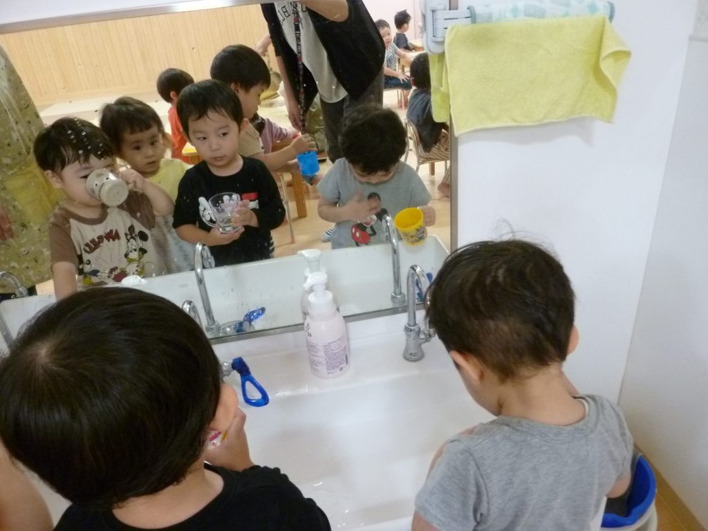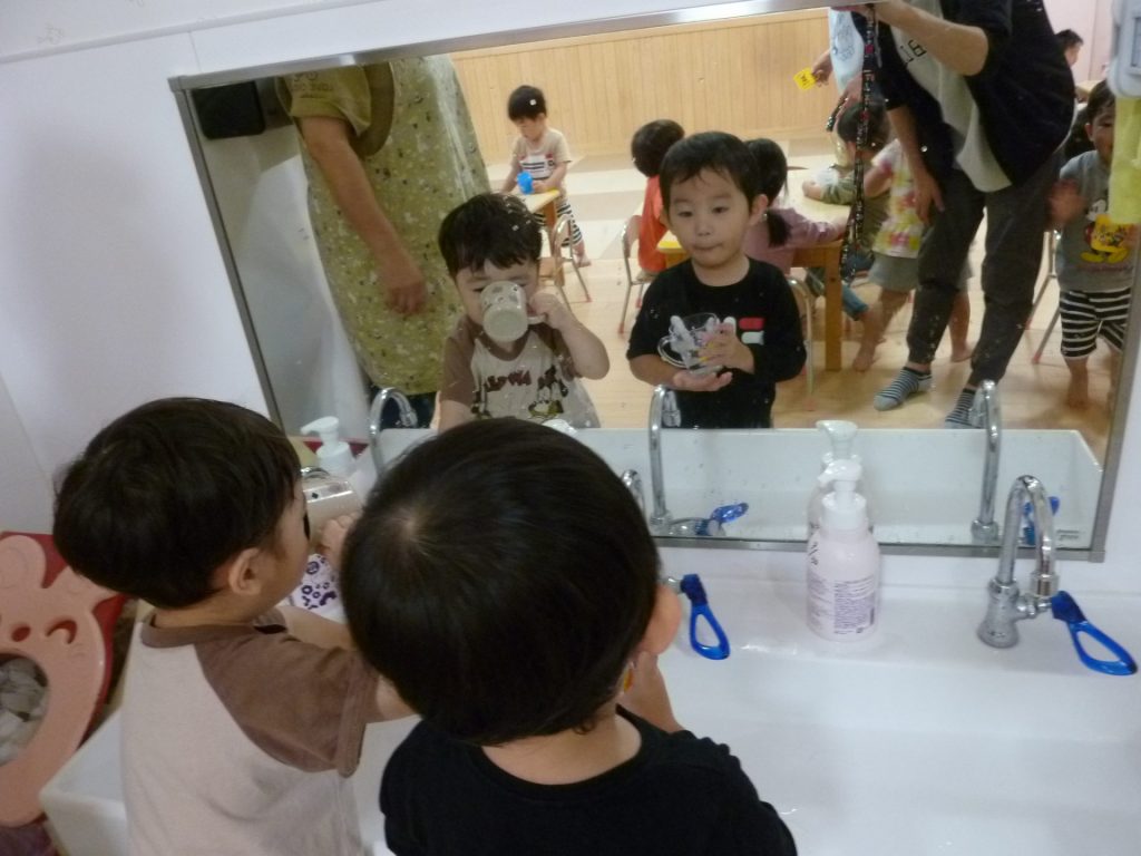 お部屋の中に入って、手洗い、うがい。
