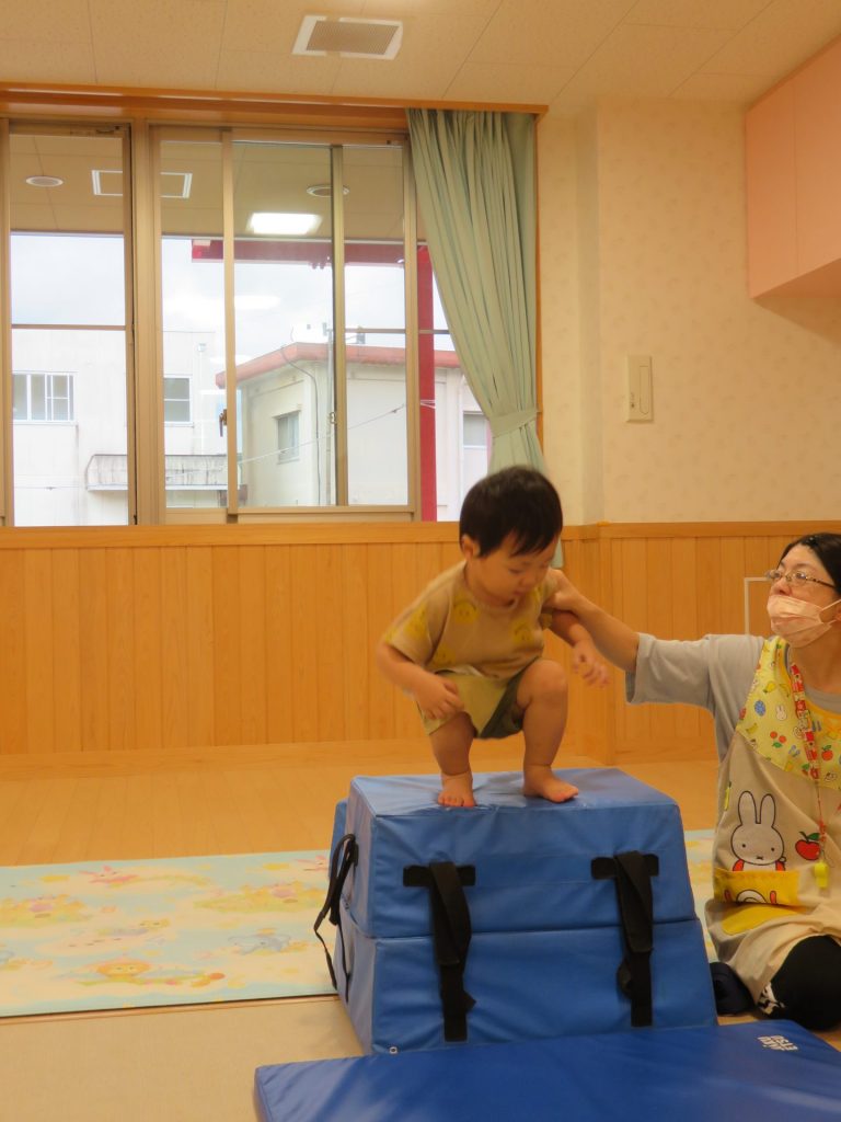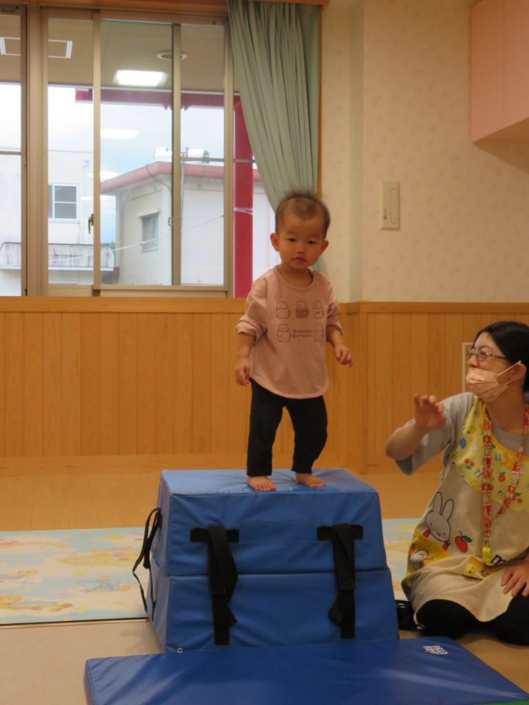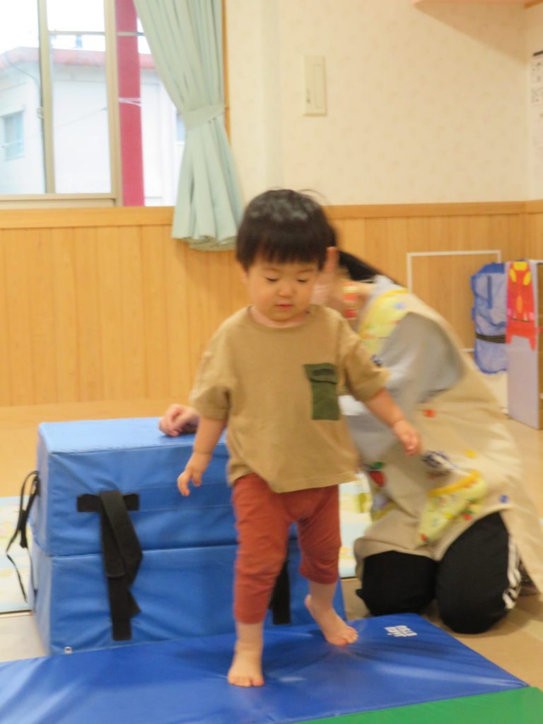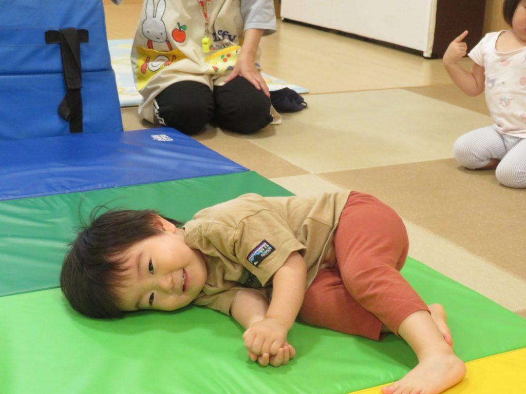 高いところも平気になりましたね。ゴロゴロも楽しそう。 元気いっぱい体を動かして遊んだひよこ組さんでした。