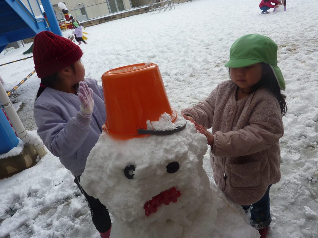 こちらでも ⛄ゆきだるまづくりに挑戦! かわいい雪だるまの完成です!