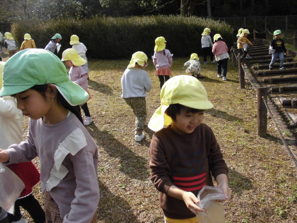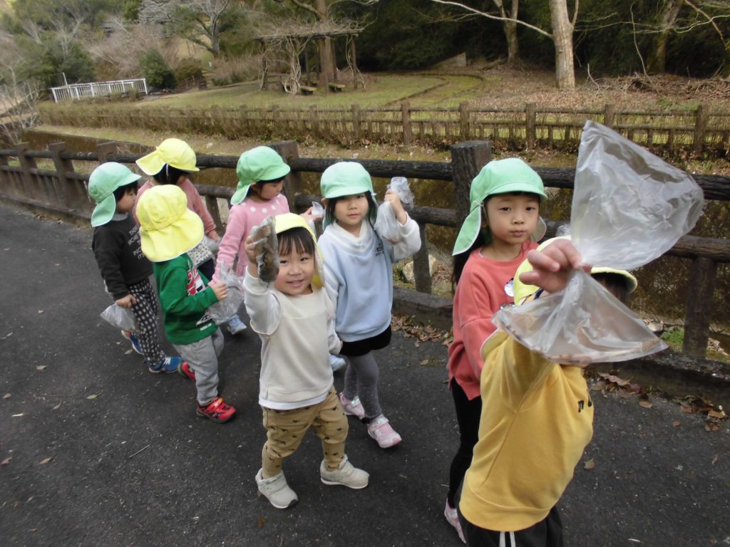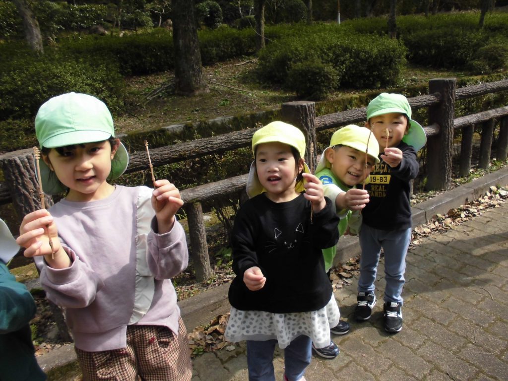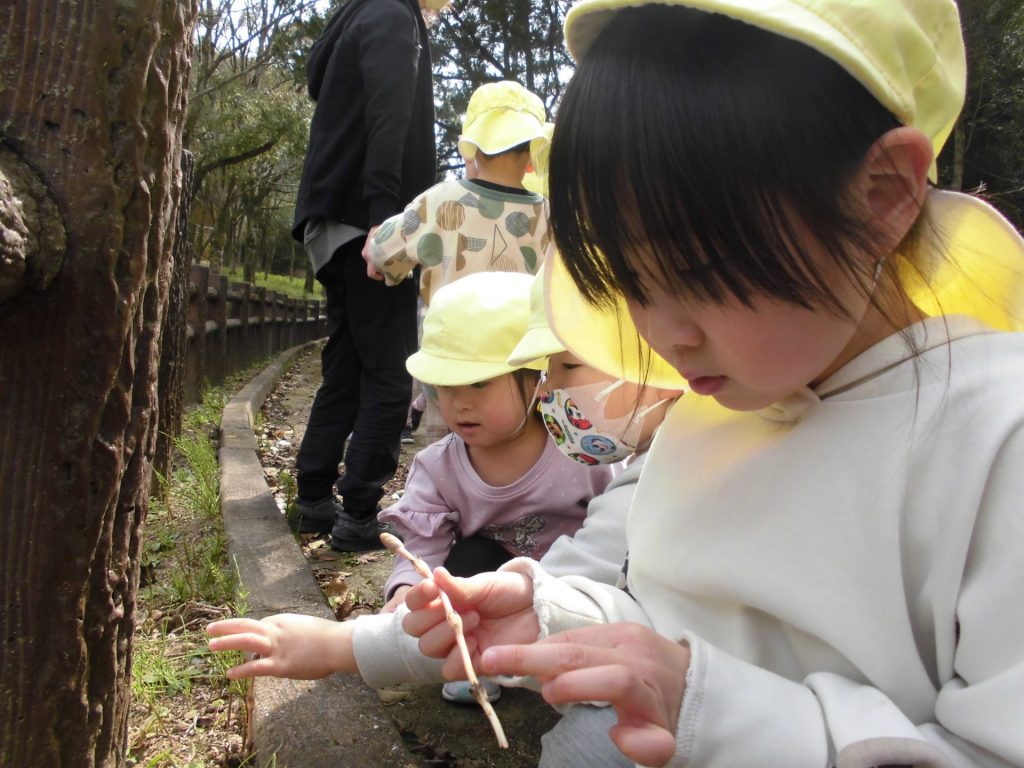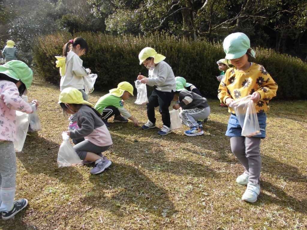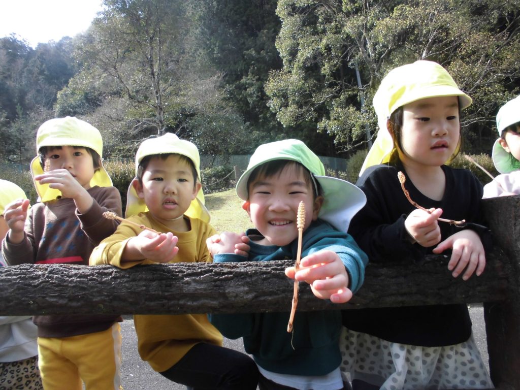 つくしも たくさんとって、持って帰ります!「保育園に帰ったら 園長先生に見せてあげる☺」「パパとママにおみやげ!」と 喜んで集めていました。