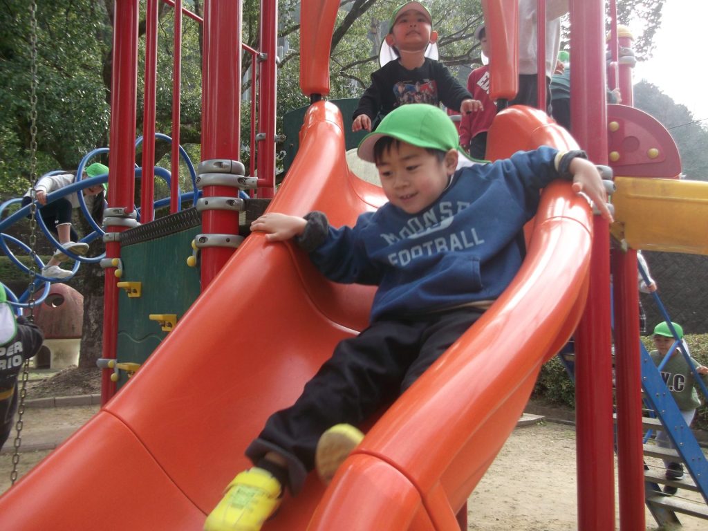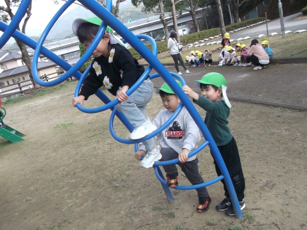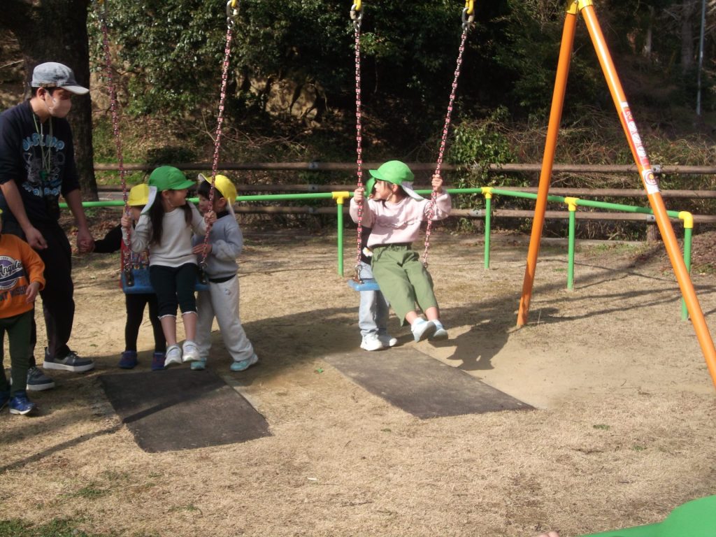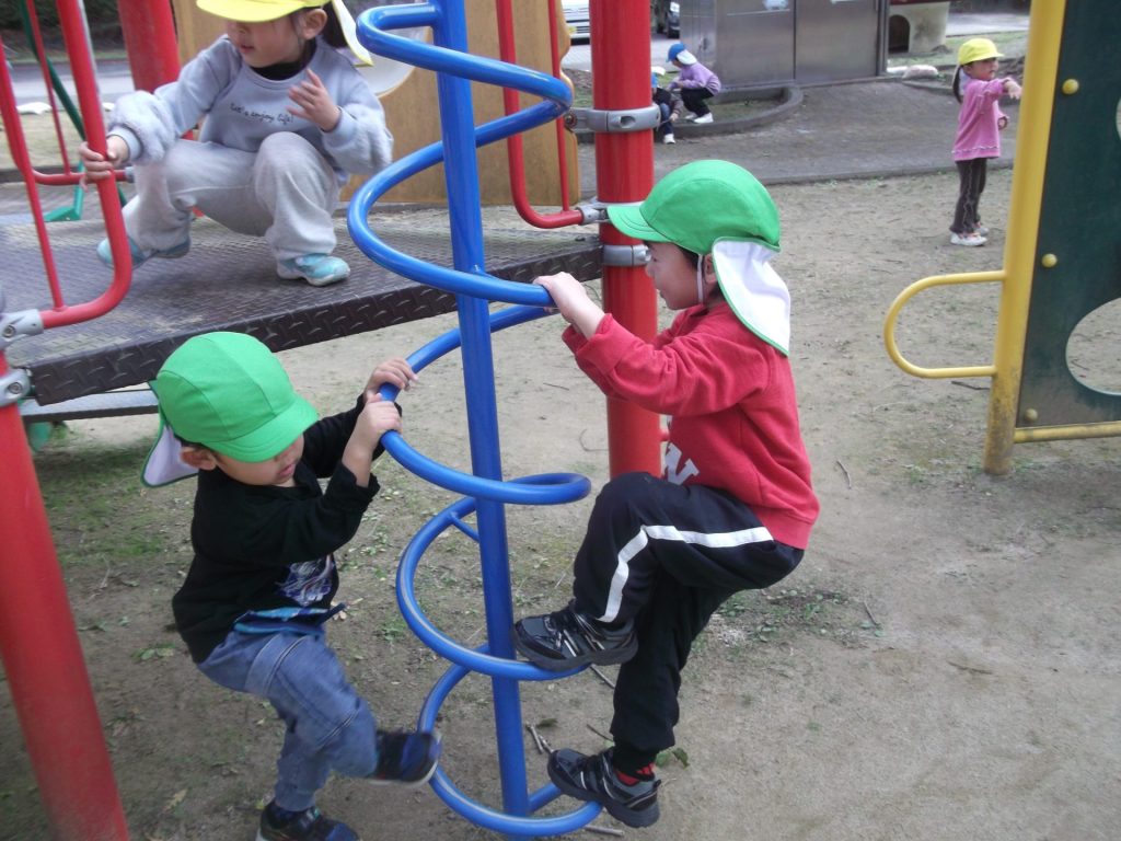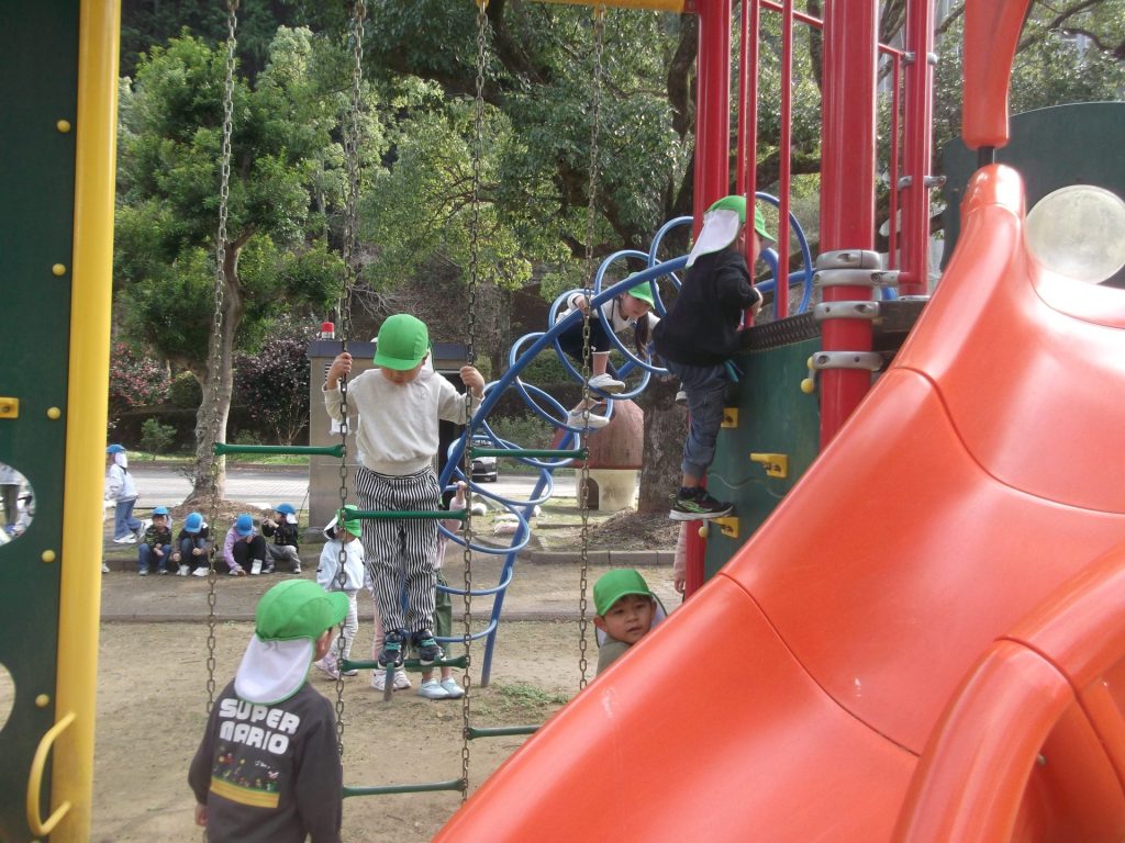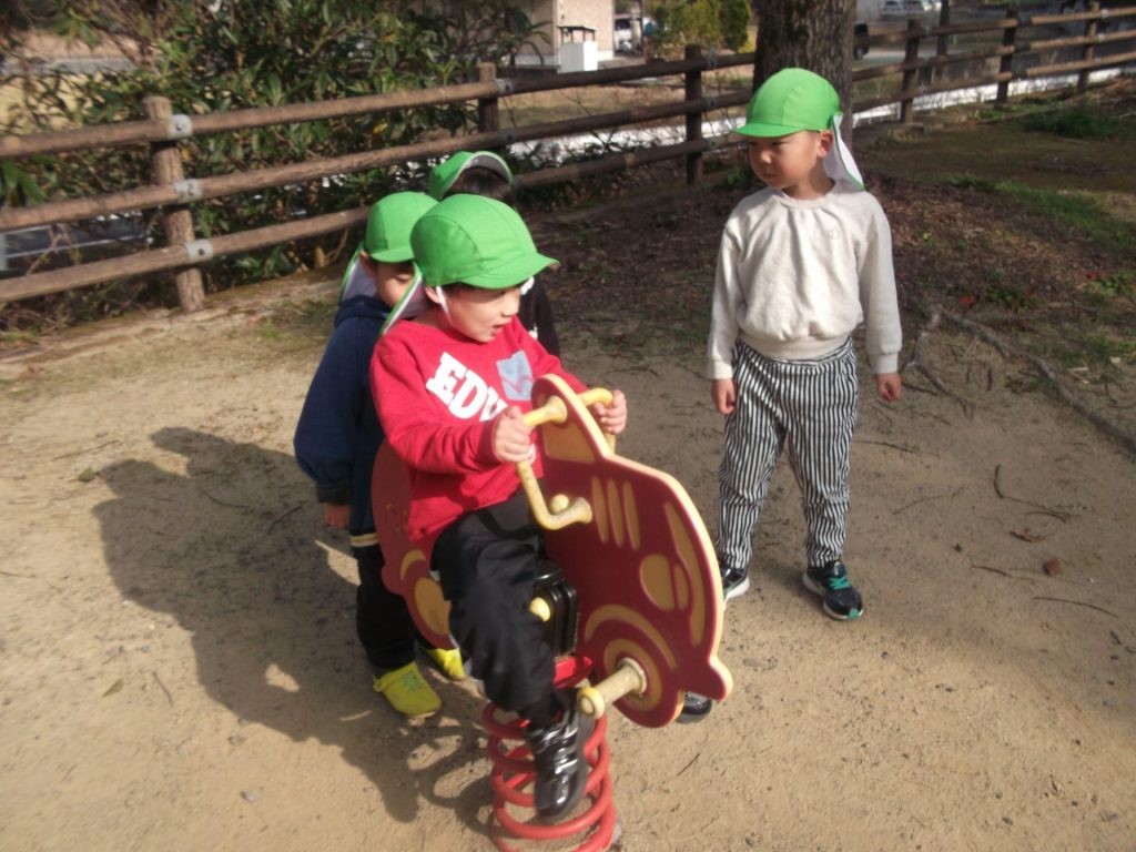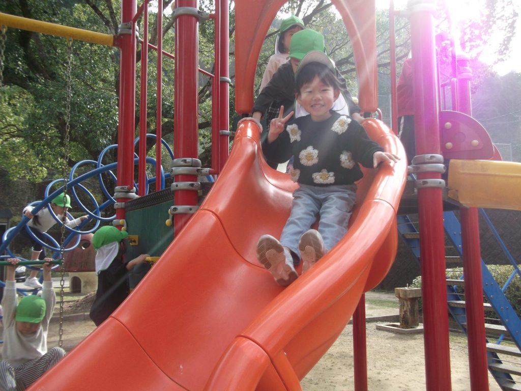 今日は 久しぶりに 全員そろいました♡ やっぱりみんなそろうと楽しいね☺ 午後から、ぱんだ組さん りす組さん ねこ組さんで 凧あげにグラウンドへ行きました。その前に、公園でも遊び・・・四つ葉のクローバーを探したり、すべり台やアスレチックでたくさん体を動かしました。今年初の凧揚げに挑戦した子どもたち♪ 一生懸命走り「天まであがったよー!」と嬉しそうでした☺