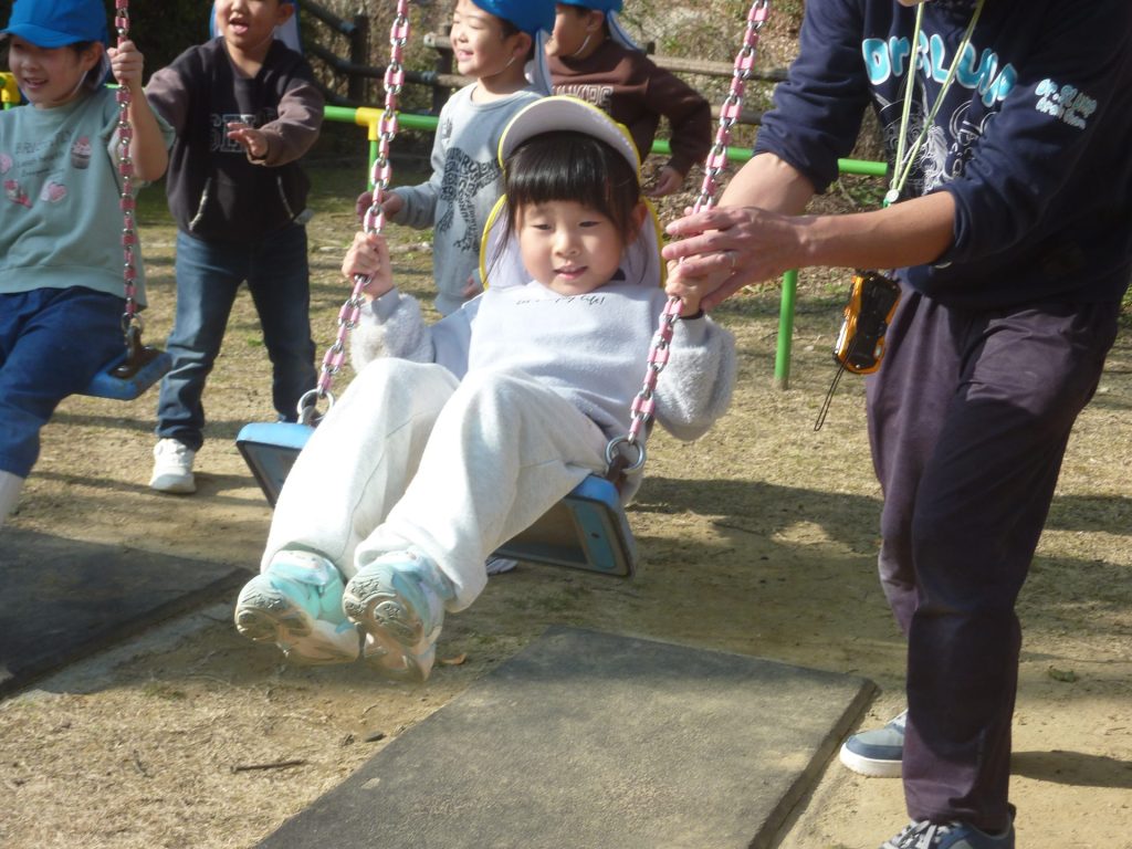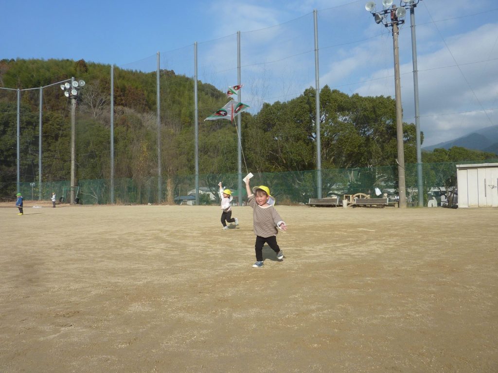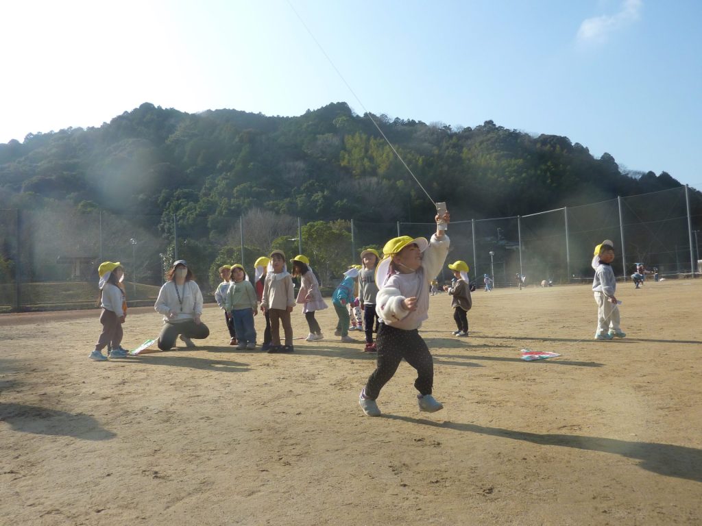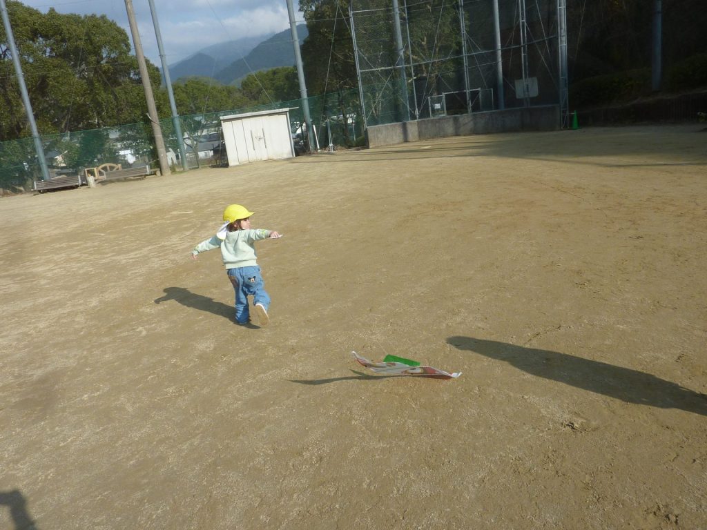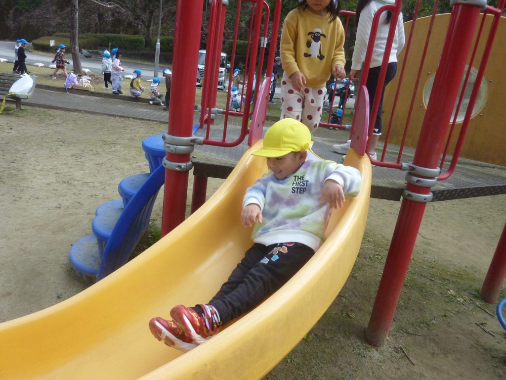 公園ですべり台やブランコで遊んだり、グラウンドを走り回り たこあげを楽しみました。元気いっぱいのねこ組さんでした☺