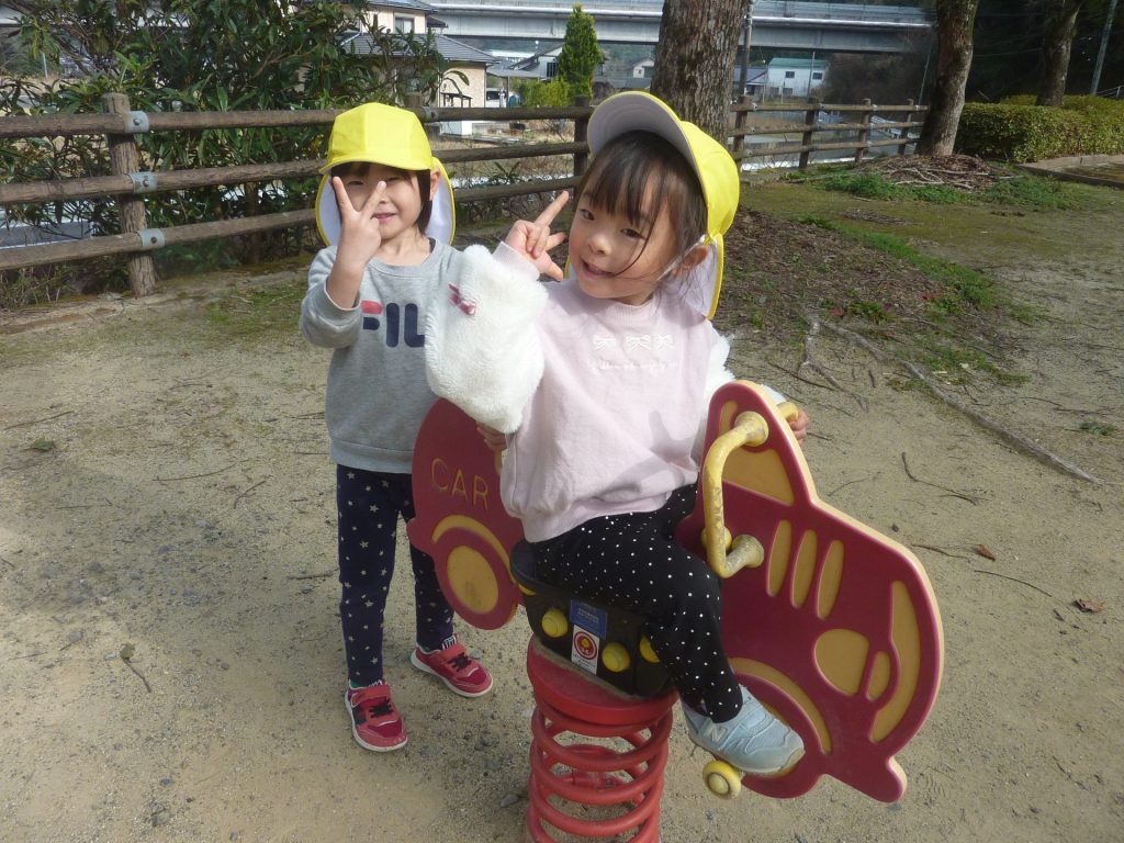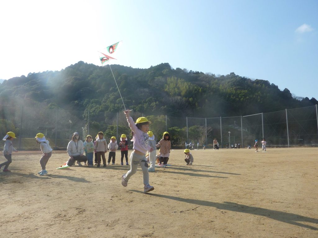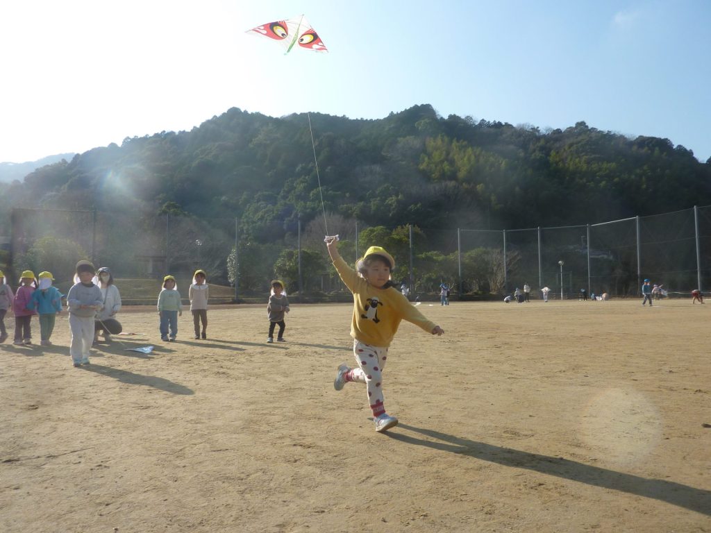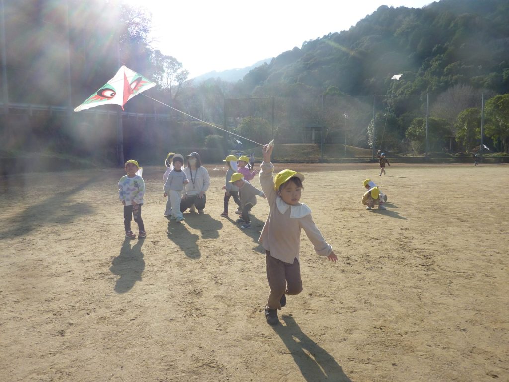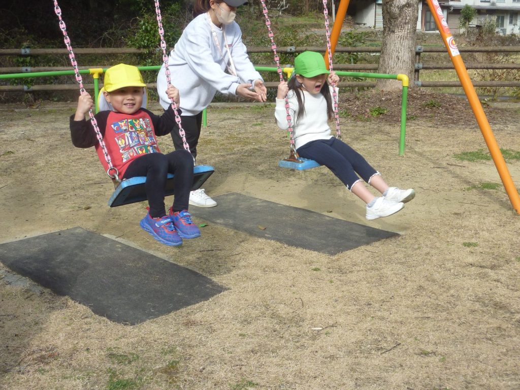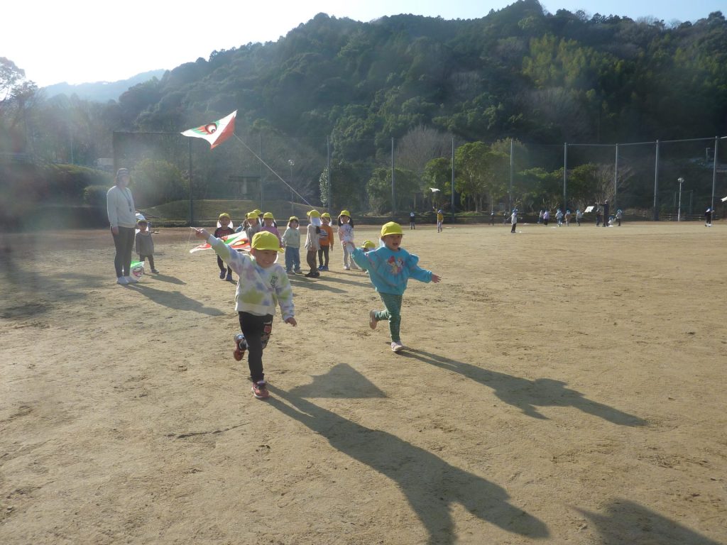 公園ですべり台やブランコで遊んだり、グラウンドを走り回り たこあげを楽しみました。元気いっぱいのねこ組さんでした☺