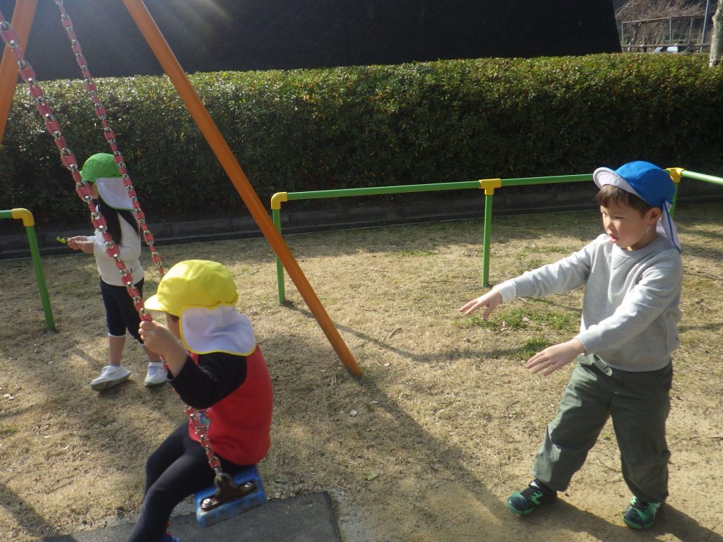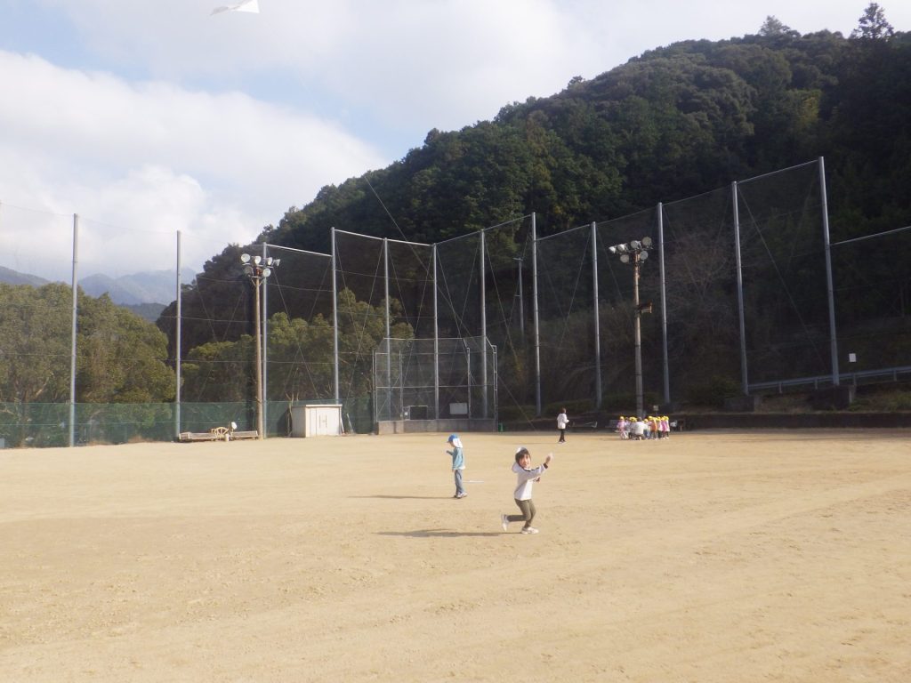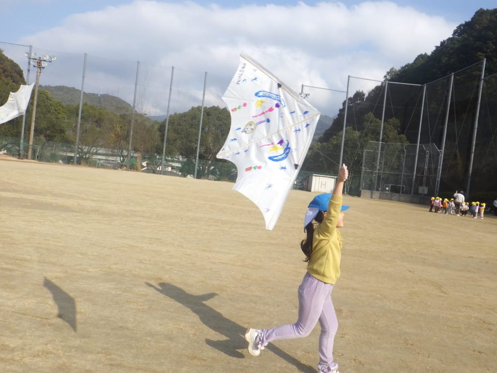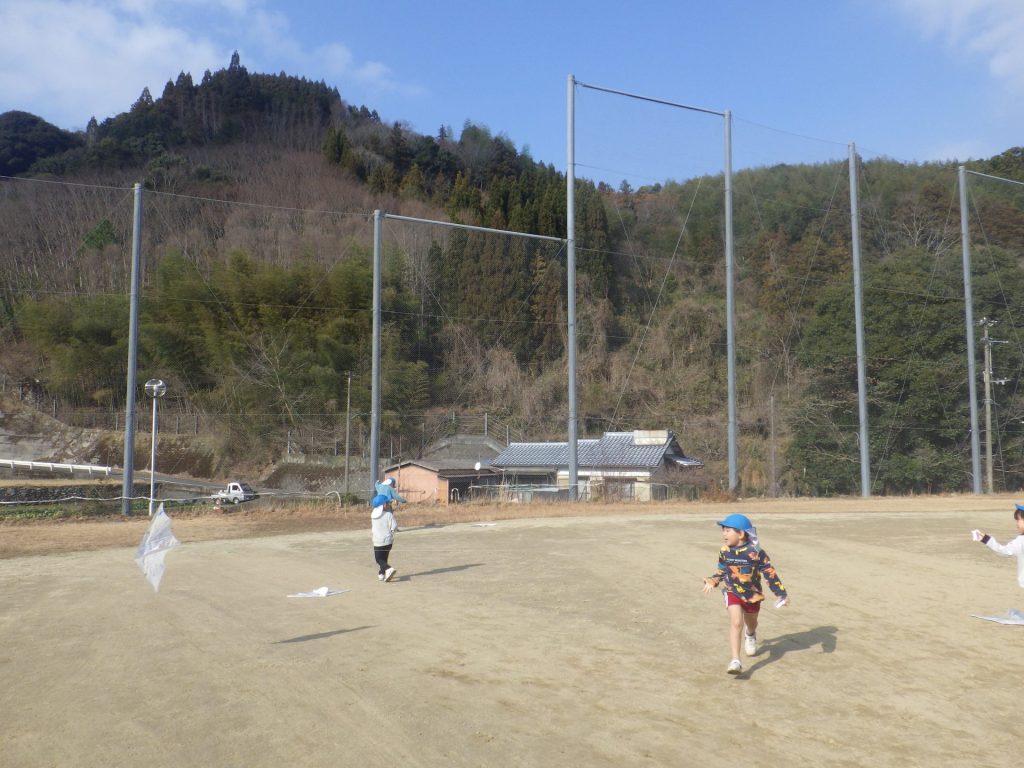 お天気のいい中、みんなで凧あげを楽しみました。風が吹いて「わぁーあがった!」と嬉しそうに 声があちこちから聞こえ、空高く上がった凧を一生懸命見上げていました。冬ならではの遊びを 思いきり楽しみました☺