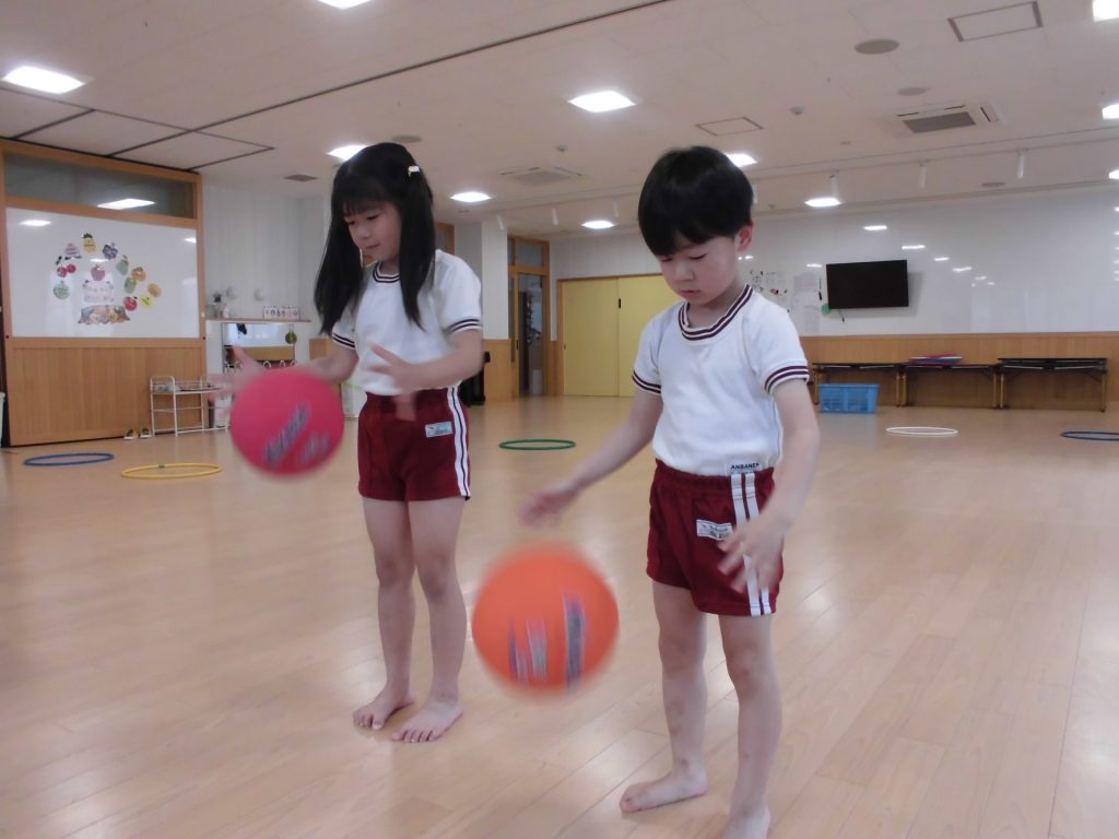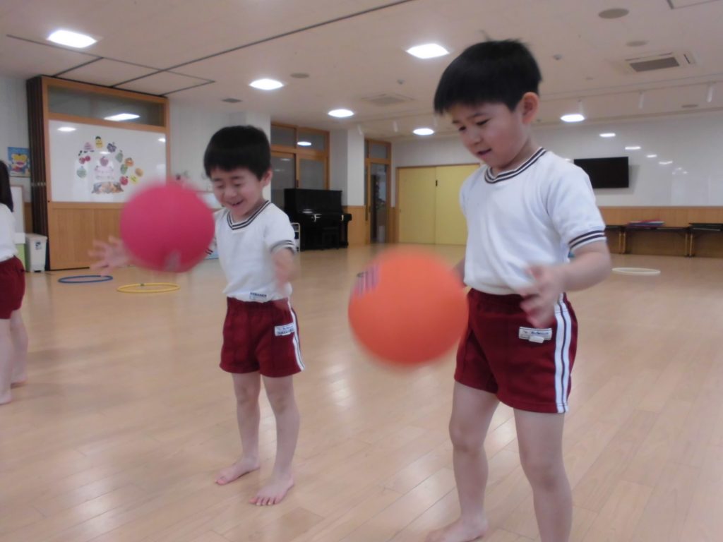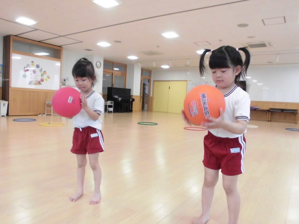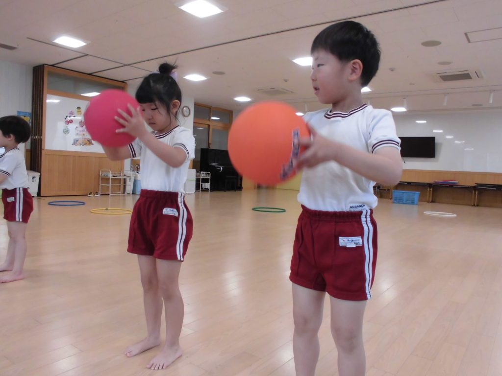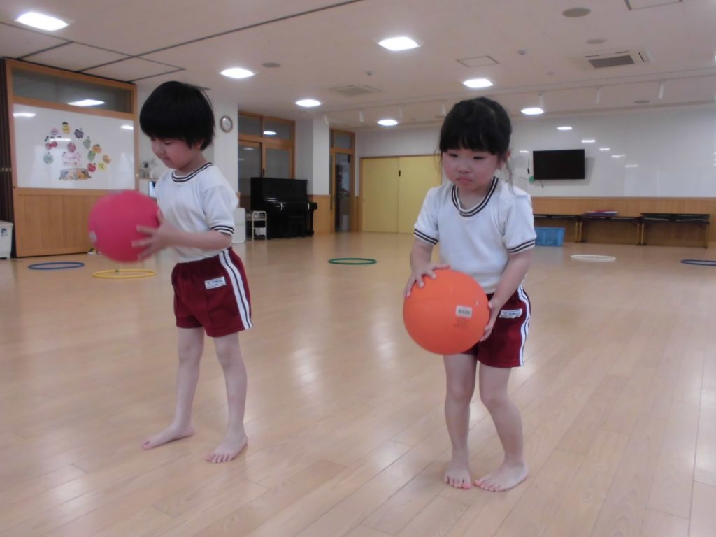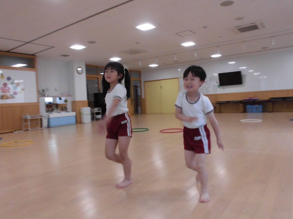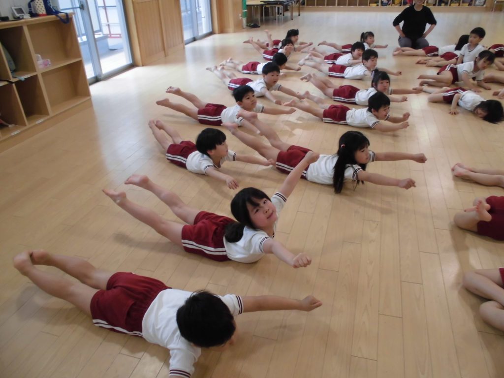 今日は、ぱんだ組になって初めてのリズム教室。さすが ぱんだ組さん。かっこよく体操座りで待っています。体操をしたり、リズムに合わせて歩いたり、ねこ組さんやりす組さんのお手本になれるよう頑張っていました。明日からお勉強 ・体操も始まります。みんなで頑張っていこう!